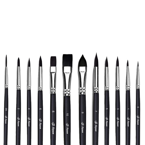 Ensemble de pinceaux de peinture d'artiste synthétiques noirs pour aquarelle, peinture d'art à l'huile acrylique, 12 pièces, nouveaux produits